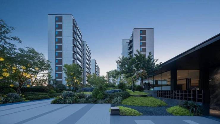 一脉现代简约风格,以灰白色为主的东方美学色彩,营造自然轻奢都市社区生活
