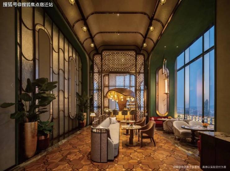 ·空中会客厅:屹立约160米高处,一线无遮挡,8米挑高空间,赋予会所I-MAX钜幕观景,配顶级中餐厅、多功能厅、雪茄吧、全日制餐厅、酒吧;