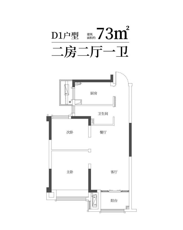 建筑面积约73㎡舒适两房一卫,年轻家庭的向往;