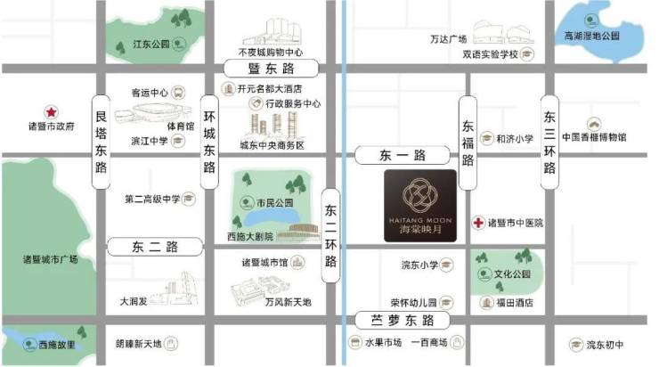 直距约700m抵达市民公园,近邻诸暨中医院、西施大剧院、科技馆,举城繁华便捷