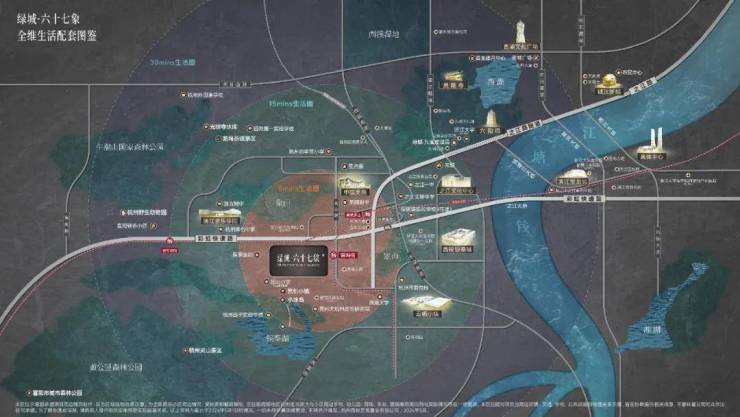 绿城·六十七象位于之江国家旅游度假区,域内山峦环伺,植被茂密,相邻景区有宋城、杭州野生动物园、铜鉴湖公园、九溪、六和塔、云溪竹径等,是森林覆盖率近70%的城市天然氧吧。