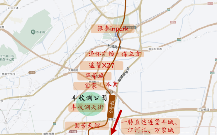 2)西侧的杭海路是板块内的南北向交通干道,往北不仅是临平连接主城的动脉,往南更是连接着钱塘快速路;