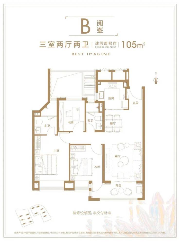 户型空间上,打造建面约105㎡三房两厅两卫和建面约125㎡3+1房两厅两卫,方正户型,南北通透,开敞格局极大提升生活舒适度。