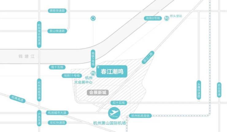 绿城·春江潮鸣,背靠约940亩白虎山原生山林,这里是天然氧吧,丰富的负氧离子,优越的气候条件,使得这里成为理想的宜居之地。会展新城的规划,启幕了拥江发展3.0的新篇章,大会展中心作为杭州“十四五”重点建设项目,总投资约200亿元,总建面约134万方,为全国“三大会展中心之一”。