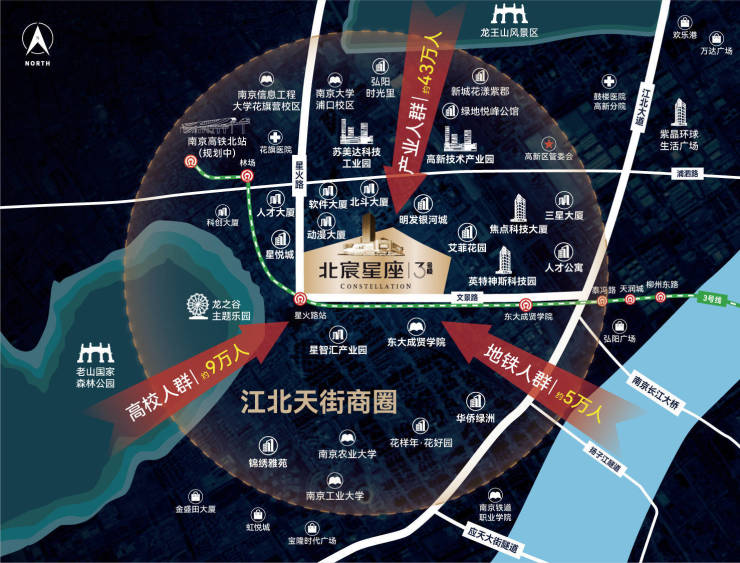 • 高等教育中心:南京信息工程大学,东南大学等12所高校云集,近9万以师生为代表的客群聚集。