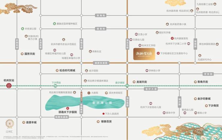 地铁&高架,通达全城:项目毗邻南北向主干道海达北路,下沙行政中心、商业中心、金沙湖、医疗中心等重要地标一路畅达;直距约300米德胜快速路,直连东湖高架,更有地铁1号线加持,高效链接西湖、武林、钱新、未科等多个CBD与产业中心,快速通达杭州核心区。