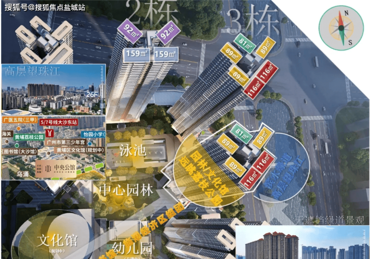 同时也是7号线的大沙东站,坐地铁3站黄埔科学城,7站番禺万博,约半小时内畅达广州各大CBD如珠江新城CBD、琶洲CBD、万博CBD