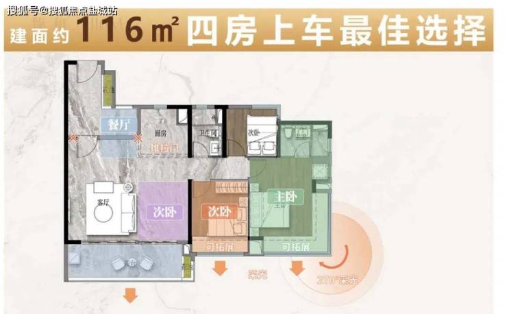 116㎡四房两厅两卫:南北通透,全明格局
