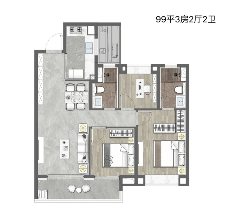 约99m²3房2厅2卫(高层)