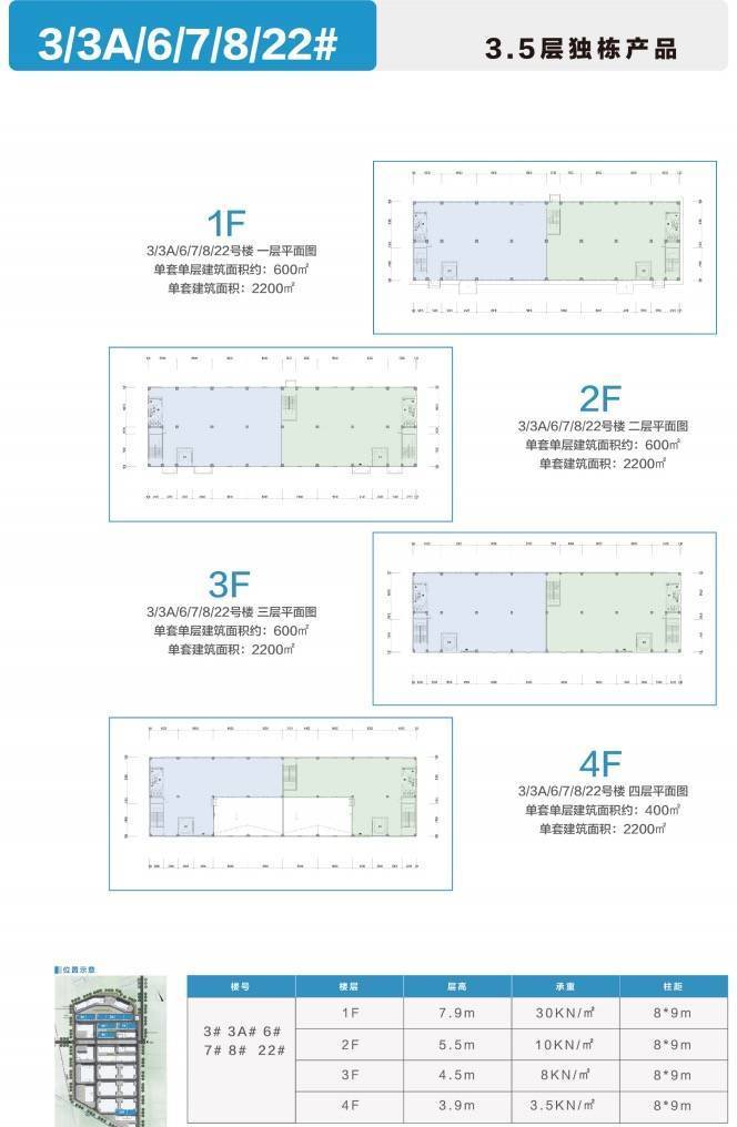3.5层 1F 7.9m/2F 5.5m/3F 4.5m/4F 3.9m