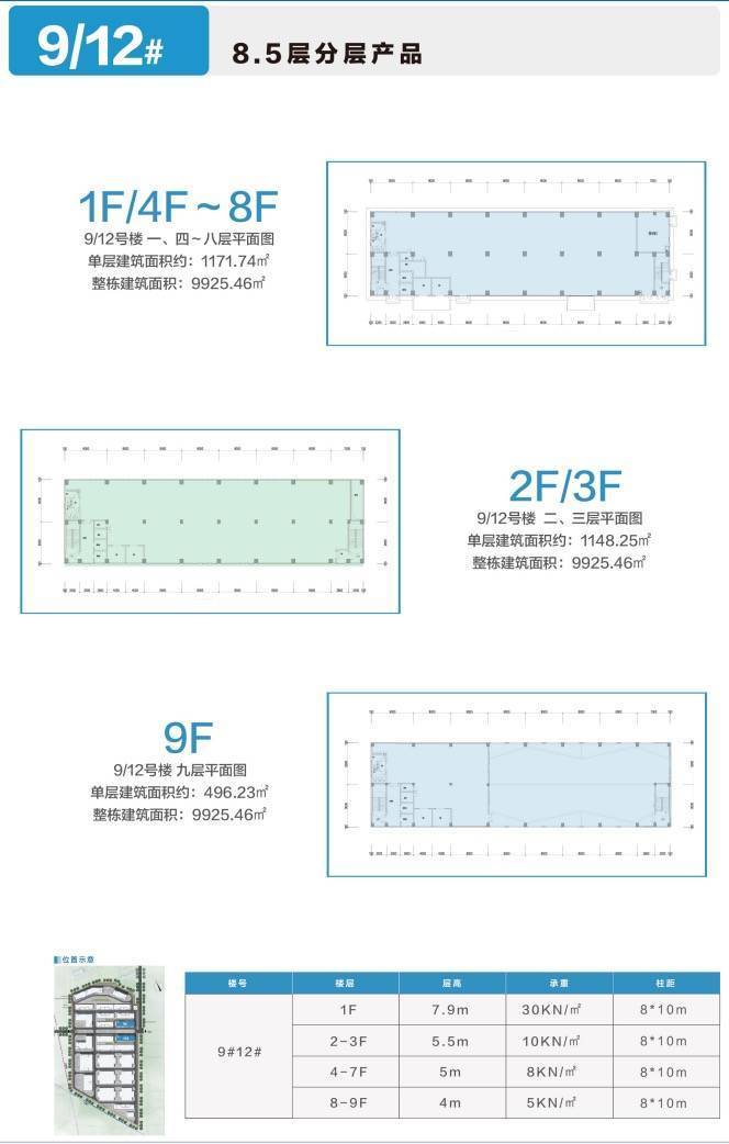 8.5层 1F 7.9m/2-3F 5.5m/4-7F 5m/8-9F 4m