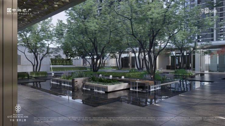 约20万方的超大体量之上,中海·璞翠云集竟围合出了一个接近两个标准足球场大小的中央双景观花园,把大体量的奢阔进行到底。