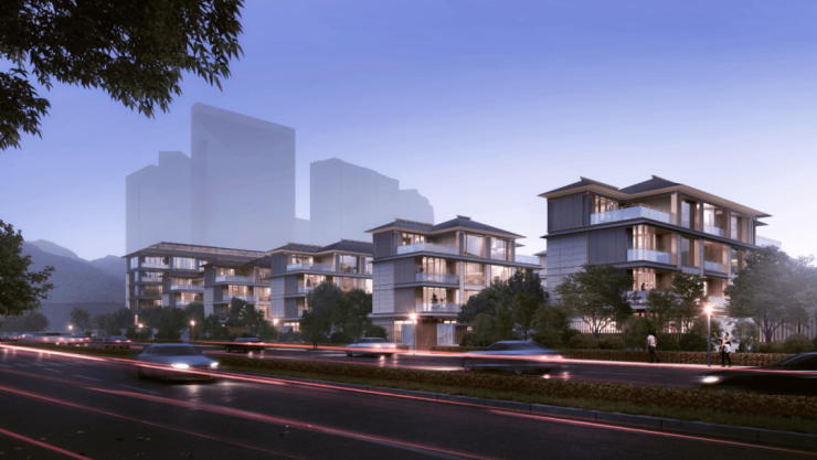 项目总用地面积 15584㎡,总建筑面积达约 31678.2㎡,其中地上计容建筑面积 18778.2㎡,地下建筑面积 12900㎡。容积率 1.2,建筑密度 32%,绿地率 30%,规划 9 幢 4F 排屋和 2 幢 6F 洋房,仅 61 户。