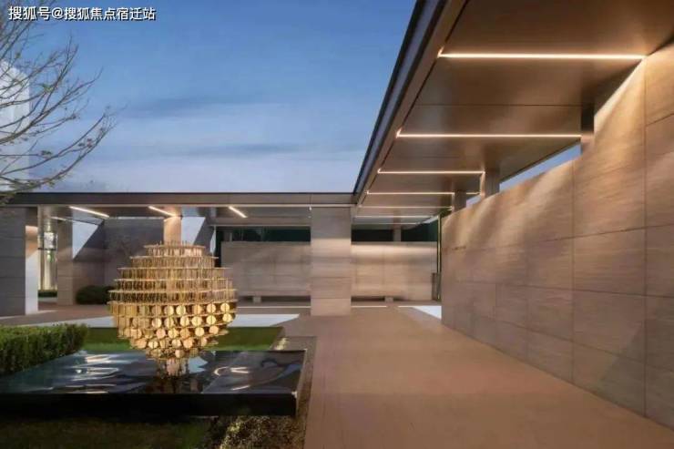 第五重转折庭院:连廊、金属雕塑、灯光搭配美轮美奂。