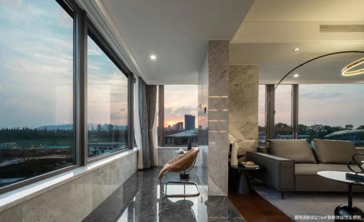 项目现场打造建筑面积约166㎡和建筑面积约216㎡装修体验馆,一梯一户,私密性佳,出入便捷。建筑面积约216㎡户型,五房两厅四卫,一体化客餐厅,推杯换盏笑谈日常趣事;套房主卧,追溯宽居本真;270°瞰景阳台,一线湖景,美景充盈。