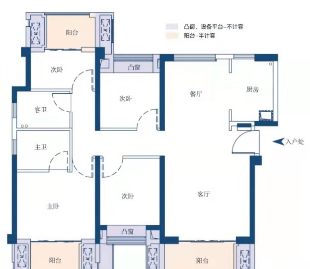 户型点评:从户型上来看,两个户型都做到了大面宽短进深,动静分离。由于18年以前报建没那么严格,所以之前的户型赠送率都比较高。以115㎡户型为例,半赠送的有三个阳台,全赠送的有6个设备平台及两个飘窗,这样实际的得房率是非常高的。