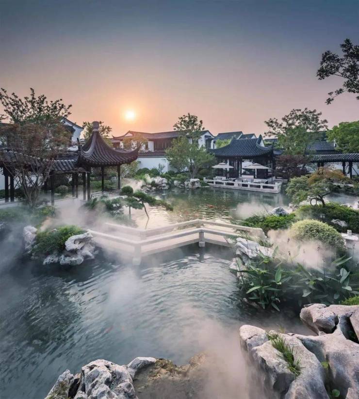 江南园林打造出的居住佳境,他和二十四节气对应,又汲取了很多包括狮子林、拙政林、留园等中国经典园林的精华。