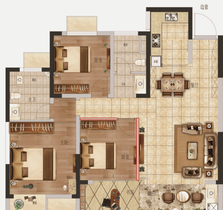 【户型鉴赏】建筑面积约 90㎡三房二厅一卫
