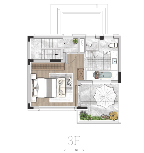 3)多功能巷道:洋房区花园空间及休闲平台、联排区南北双庭院