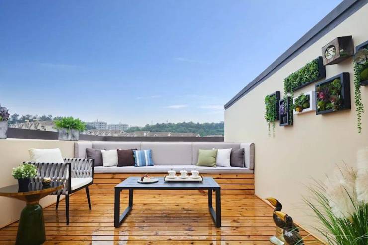 在院落内搭建帘幔,放置编织的坐垫、茶几,闲时,邀约三五好友来花园中小聚,品一口盈香四溢的花茶,来一场天马行空的畅谈。从家事聊到国事,时而陷入沉思时而开怀大笑。抑或准备一些色泽鲜美的菜品,与邻居来场家庭聚会,在璀璨星光与院内暖意灯光的交错下,品尝诱人美味,畅谈生活趣事。