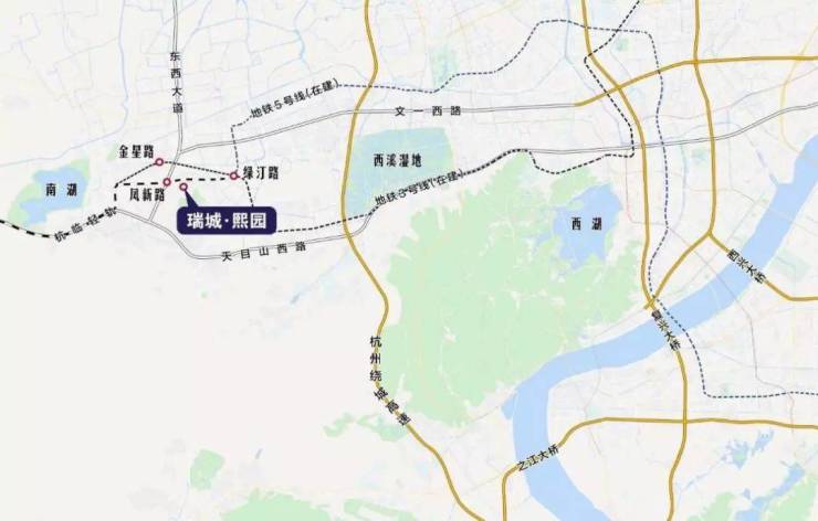 瑞城熙园坐落于杭州未来科技城核心居住区,毗邻规划中的世界级中轴线,仅2公里之遥, 半小时生活圈汇集江南时代购物中心、亲橙里、西溪印象城、海港城等商业配套,精粹繁华配套,成就城市人居新品质。更有3轨交通近距依傍,约500米地铁3号线(在建)/5号线绿汀路站,16号线凤新路站,畅行无阻。
