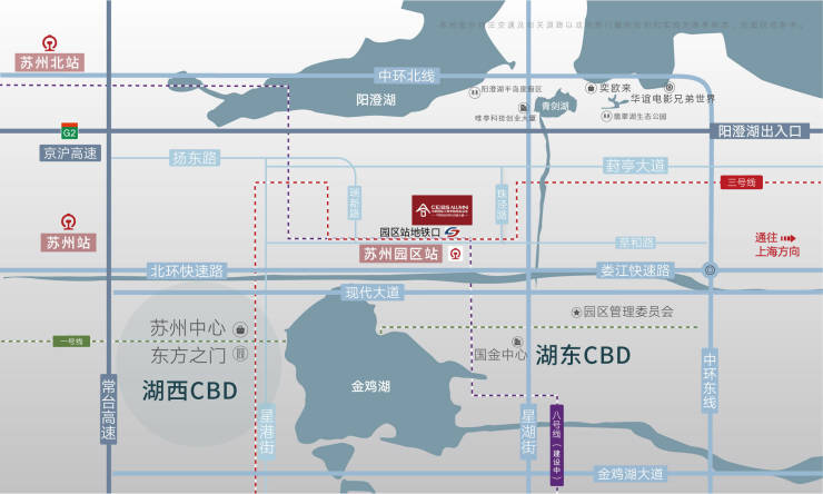 鼎立金鸡湖北:约15分钟车程直达园区湖东、湖西娄江快速路、北环、中环高架集汇,快速通达全城