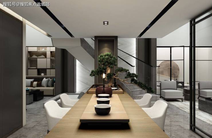 轩阔横厅,私家电梯直达,约3米采光井,客餐厅一体,南向入户庭院