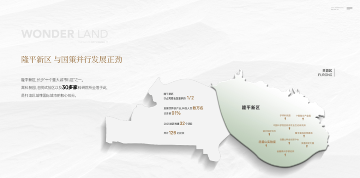 隆平片区整体面积 23.73 平方公里,占芙蓉全区面积的 55.4%;而以岳麓山实验室为核心的省农大、省农科院区域、隆平生物种业产业园在整个隆平片区占比 27.5%;科研及种业产业占全区的土地比重全市唯一。