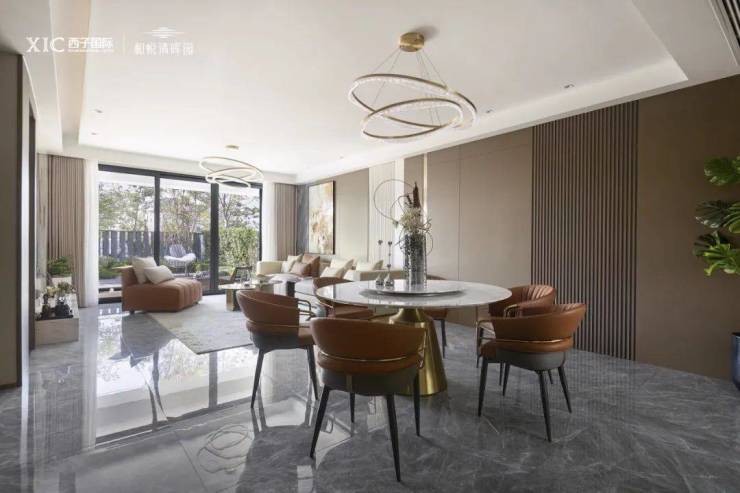 要谈尺度,无论是190㎡的上叠还是下叠,餐客连厅达到近40㎡,再配合大面积落地窗采光,空间的尺度感扑面而来。这样的餐客厅尺度,在同类产品里(200㎡以下)已是最大。