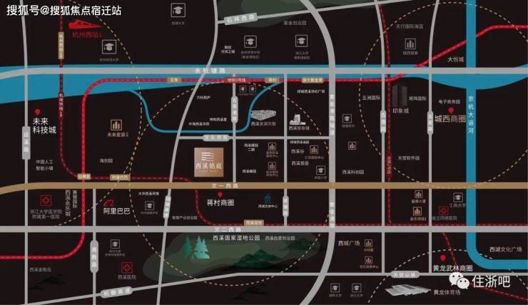 择址蒋村板块,地理位置优越。东接繁华的文教区,西临“宇宙中心”未来科技城,距离西溪湿地直线距离仅800米,闹中取静,拥享静谧诗意生活。