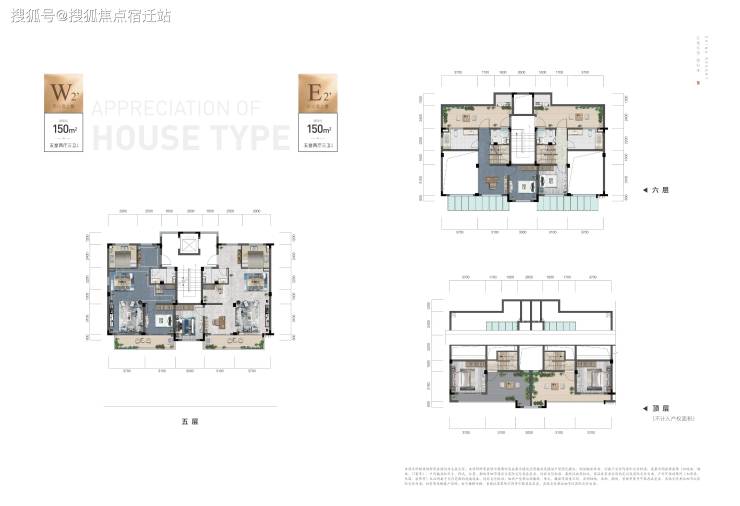 双叠排:建面约140㎡、145㎡(四室两厅三卫),建面约133㎡ (三室两厅三卫)