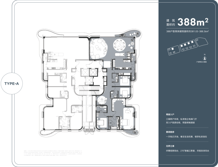 重点:项目即将迎来五批次加推,约180㎡/240㎡/290㎡/388㎡全线产品登场,这其中约290㎡是首开爆款户型,时隔1年后再度返场,江景首排占位,享无遮挡环幕视野。