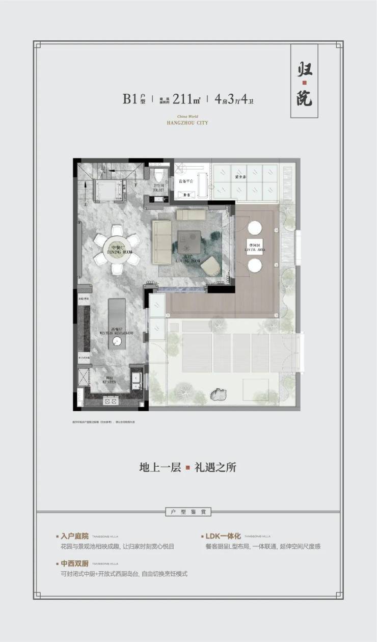 塘颂的样板房,可以说满足了人们对房子的所有向往:院子、露台、阳光、奢阔,装得下春花秋月,也装得下天伦之乐。马云御用设计师——朱晓鸣先生,将光影变换、中式传统、人文气息充分结合起来,达到自然与人文和谐统一。
