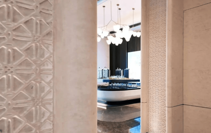 从首席制的设计操刀,六重归家的尊崇、堪称 “石材博物馆”的公区立面,到四层悬浮式下沉庭院,手工定制的艺术品,甚至连社区的灯光与会所花艺都由名师执掌。