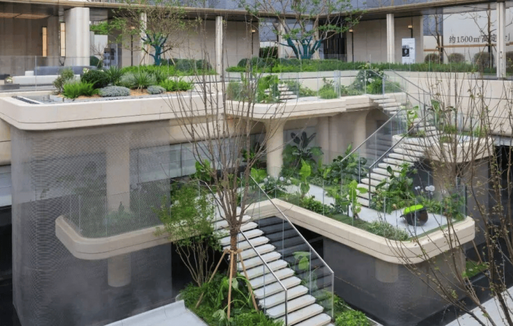 不夸张的说,看过无数个 “下沉式庭园”,招商序仍然拿出了很有创意的设计想法, 创新式打造 4层悬浮式下沉园林 ,整个立体庭园,汲取了海派大师邬达克封笔之作「曾经的远东第一豪宅 -吴宅」精髓,力求“宅、园、水、院”立体交融,借天地之景,纳四时之变,将人间春色凝于一园。