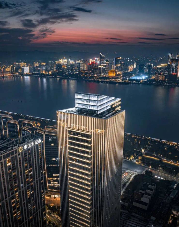 钱塘江如一条金色的丝带蜿蜒流淌,与远处的法国塞纳河遥相呼应,虽相隔万里,却在这一刻形成了美妙的对话。IOC的设计灵感来源于钱塘江的壮阔江潮及其周边丰富的城市肌理,“日出江花”与“春来江水”的主题立面对应着四季变换的自然景观,不仅赋予了建筑以生命力,也让每一位驻足于此的人们感受到时间的流转与生命的律动。