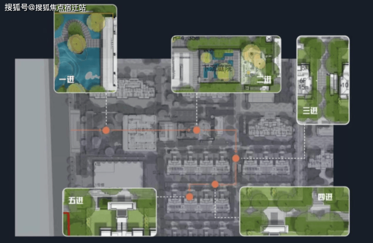 刚才说过的会所是下沉式的,与共享庭院一起,在视觉层面上打破了传统的平面布局,营造了更立体的景观体系。在功能方面,形成了多维度互动休憩空间。