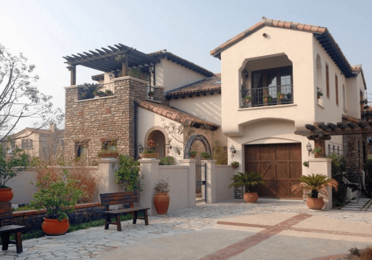 同润圣塔路斯位于松江泗泾版块,项目东临刘五公路、北面和西面临天然河道——泗泾塘、南临古楼公路;采用美国南加州的建筑风格,外立面采用淡黄色的手工Stucco抹灰外墙和红瓦屋顶,将原汁原味的南加州风格复刻至此,同时融入原木、三色瓦片、红砖、铁艺、各式烟囱等元素,渗透一砖一瓦,仿佛置身异国小镇。