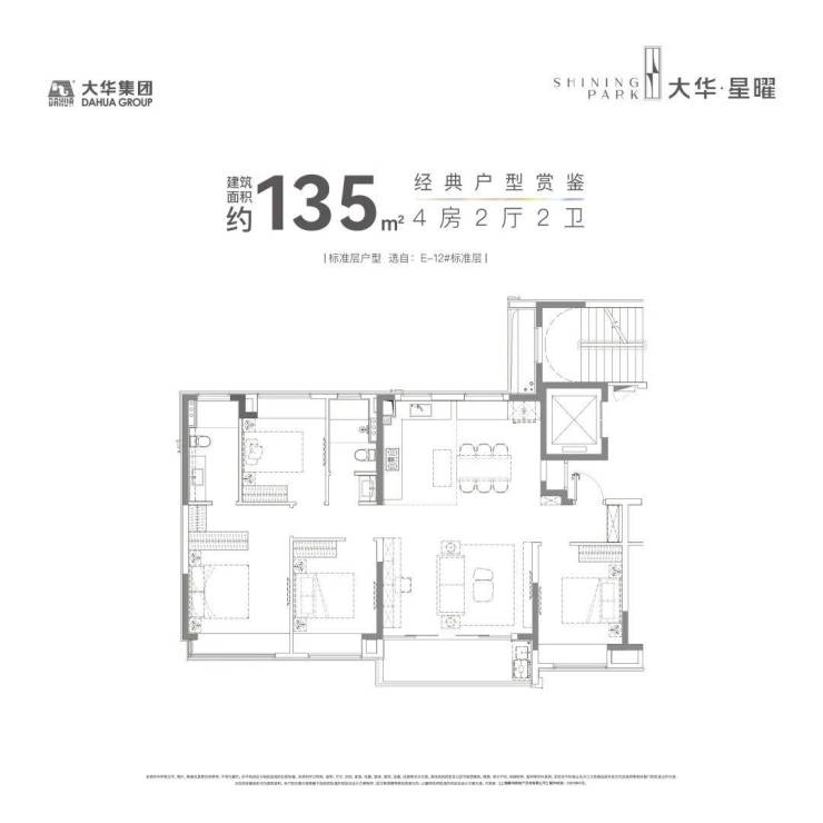 建面约120㎡的产品,市面上大多都是3房,但大华星曜做了4房的设计,实用性非常出色。