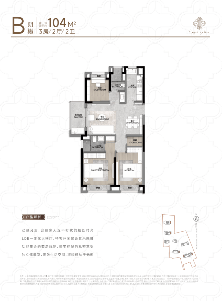 建面约104㎡王炸3房户型