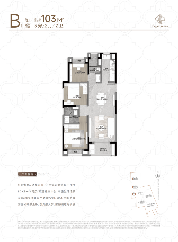 建面约103㎡3房2厅2卫户型