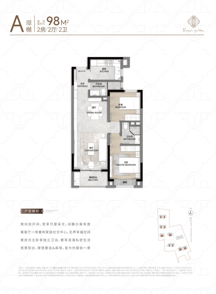 建面约98平舒适奢阔户型