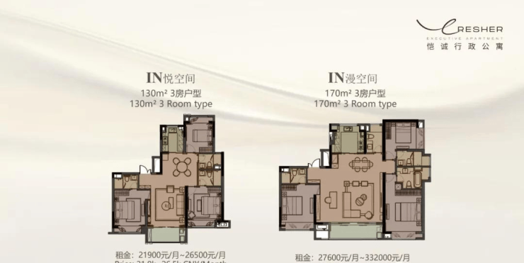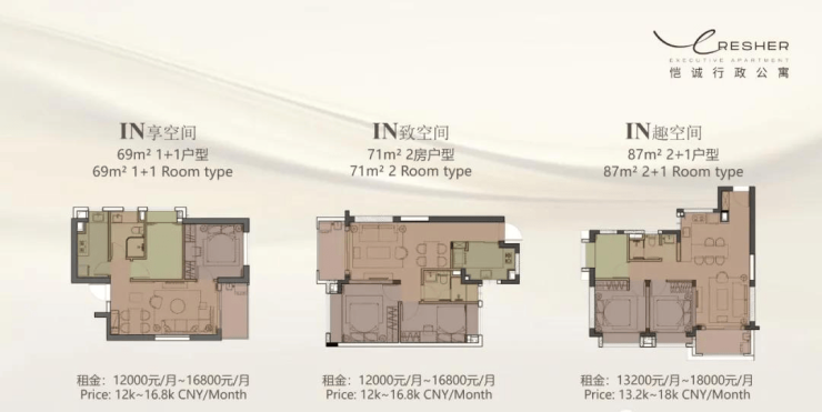 恺诚行政公寓共计AB两个楼栋,总高19层,2梯2户或者2梯5户设计,提供69-87平(182套)和130-170平(72套)共计254平1+1至3房公寓。