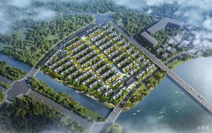 以南宋刘松年《西园雅集卷》为蓝本,融入东坡诗境灵感与唐昌十景在地文化属性,外借山水、内藏园趣,借景入园,规划“一带一轴十园十巷”园林私享滨水花园,营造山水之乐、归隐之梦。