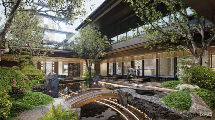 园林细节遵循中国传统园林艺术的至高思想——“师法自然,天人合一”,并以现代设计与造园手法进行国际化语境下的当代演绎,营造清雅意境。