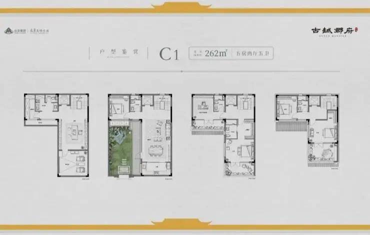 【建筑面积】项目总建筑面积 约8.5万㎡ 户型分别约216㎡、235㎡、259㎡、262㎡、269㎡、282㎡、299㎡、328㎡
