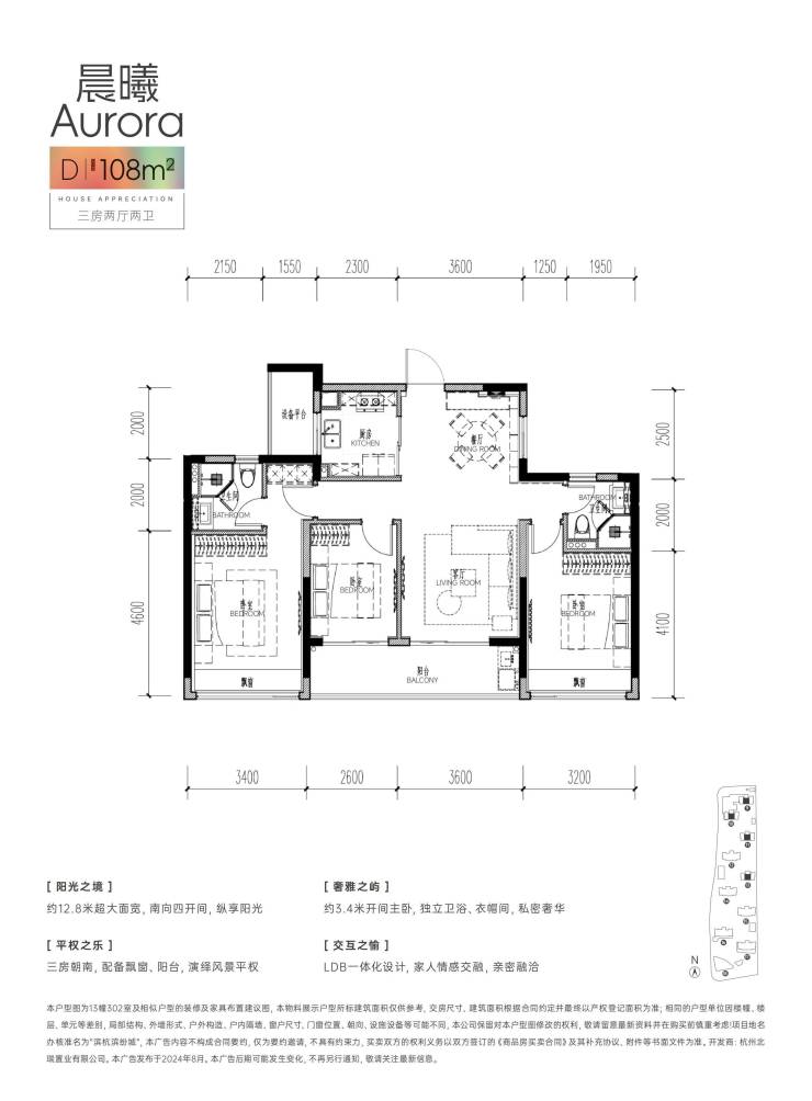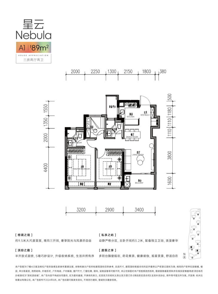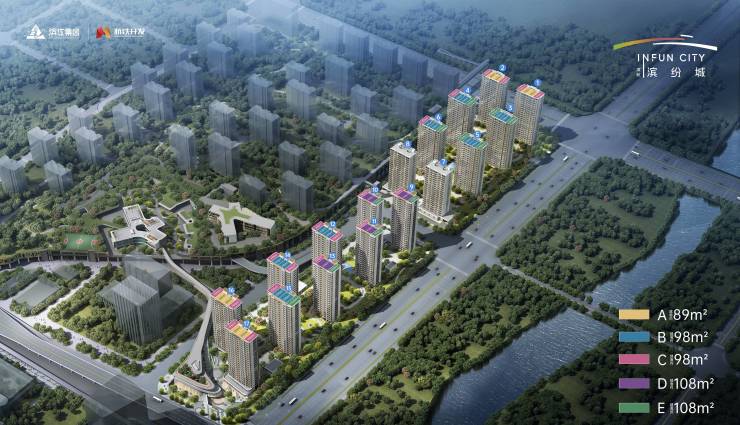 滨杭·滨纷城,傲踞东湖新城,毗邻临平北站综合体(规划),横跨地铁9号线兴元路站(在建)、康信路站(在建)两大站点,复合公园、商业、住宅等多元业态,擎领杭州城北区域崛起。项目承袭滨江高端产品力,凝萃大师灵感,打造建面约89-98-112㎡多元户型,谨献新杭州活力人群!