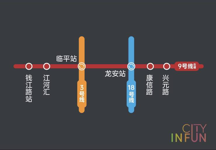 横跨地铁9号线兴元路站(在建)、康信路站(在建)两大站点,毗邻临平主轴荷禹路、宁桥大道,快速接驳钱江新城、城东新城、滨江,奢享融入城市核芯的45分钟生活圈。