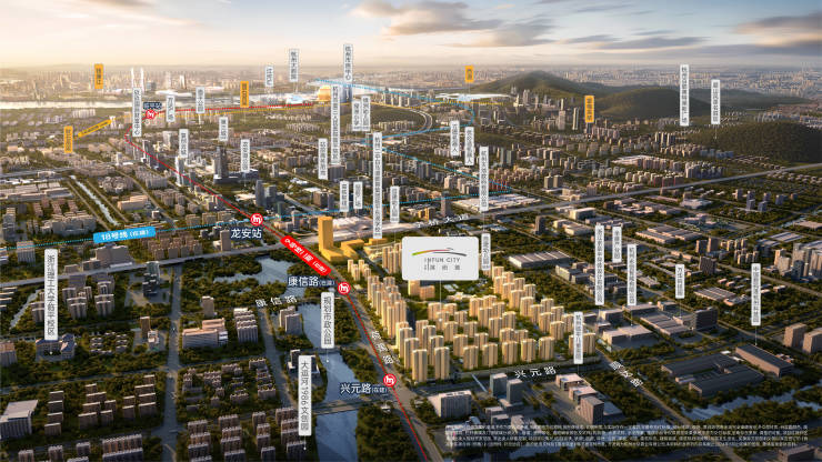 ◎流量广场:于兴元路站(在建)、康信路站(在建)、南侧公园三大节点打造流量广场,以垂直交通核,盛迎不同方向的归来。
