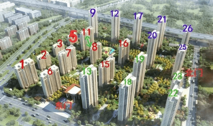 产品类型:3幢9F洋房,7幢17F,12幢22F/26F高层,共计22幢。